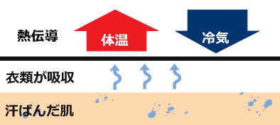 例えば、濡れたTシャツを着ている状態と乾いたTシャツを着ている場合。同じ気温でも体感温度はかなりの差が出るということは想像に難くないでしょう。