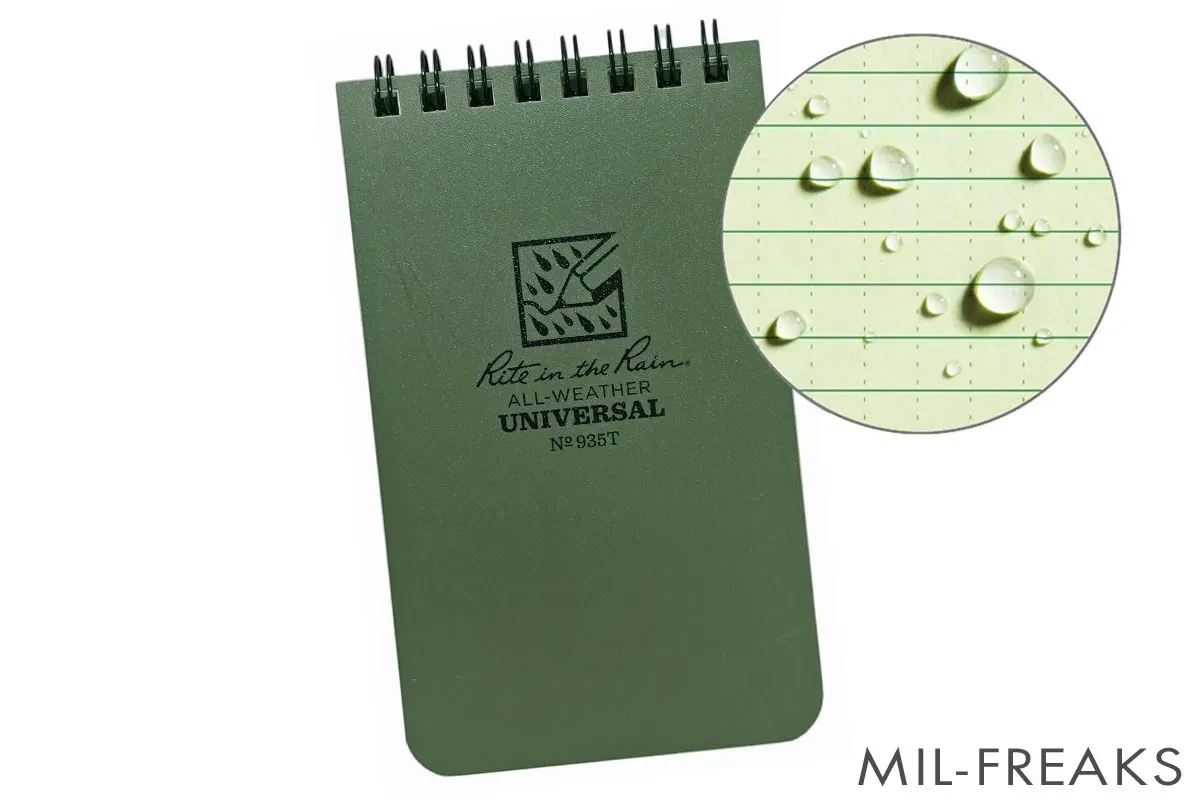 Rite in the Rain #935 オールウェザー 防水 ポケット ノートブック 3" x 5" サイズ グリーン
