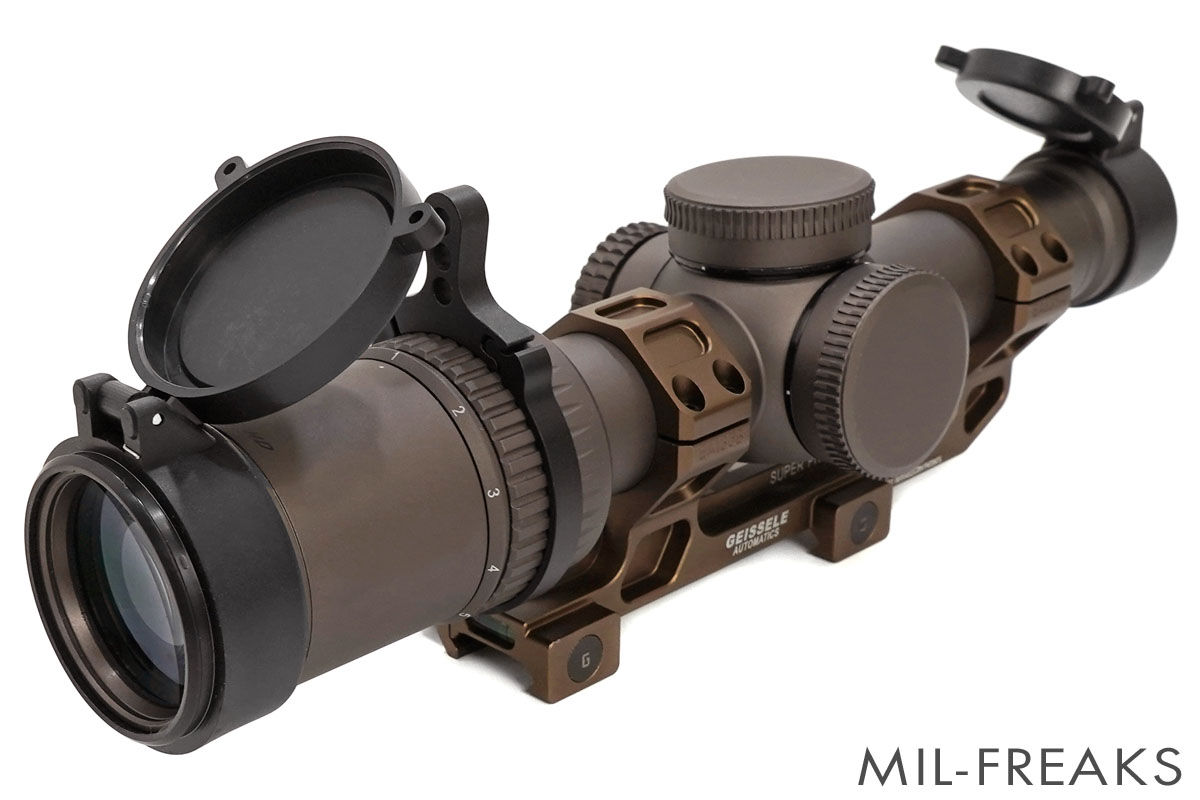 レンズは明るくクリアで、レンズキャップ・キルフラッシュ、Geisseleタイプ マウントが付属します。