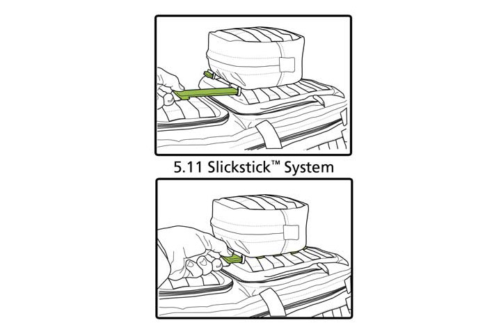 また、MOLLEは5.11 Tactical独自のMOLLEシステム、SlickStickに対応しています。