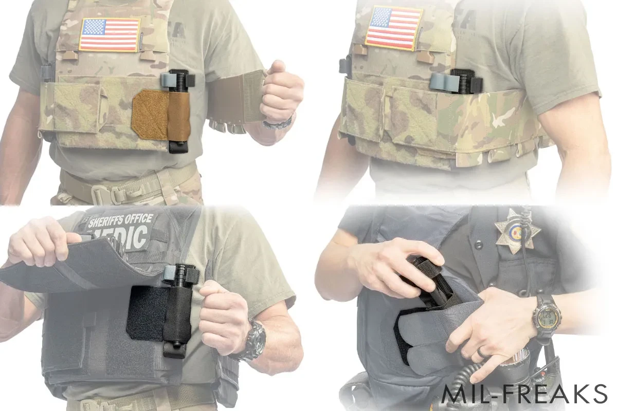 装備のセットアップ、利き手に合わせて、最も直感的にアクセスできる場所に止血帯を配置することが可能です。