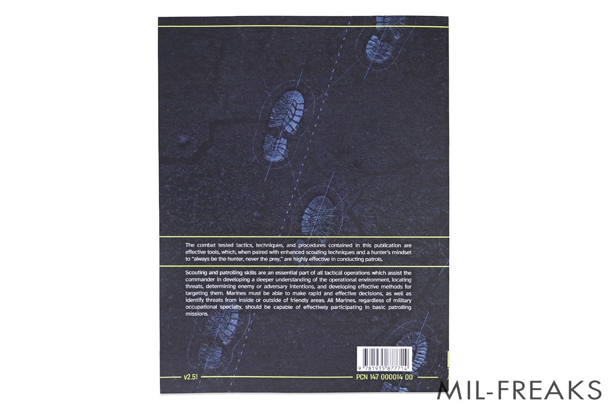 本書は海兵隊が発行する最新のマニュアル (MCTP 3-01A) であり、計画策定の考慮事項、哨戒の種類、哨戒の要素、観測、追跡、そして基本的な野外活動について網羅しています。