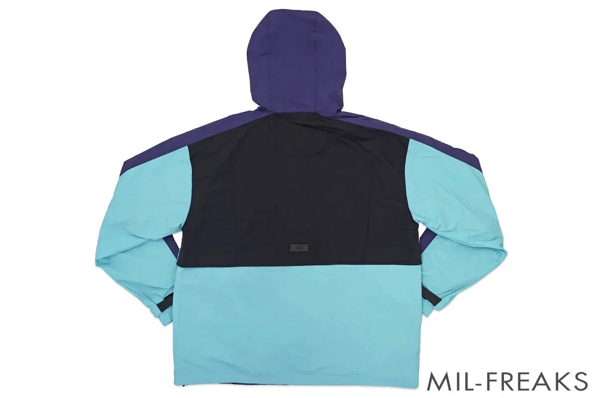 紫、ターコイズ、ピンクといったレトロなカラーの組み合わせを大胆に使用したウィンドブレーカーです。