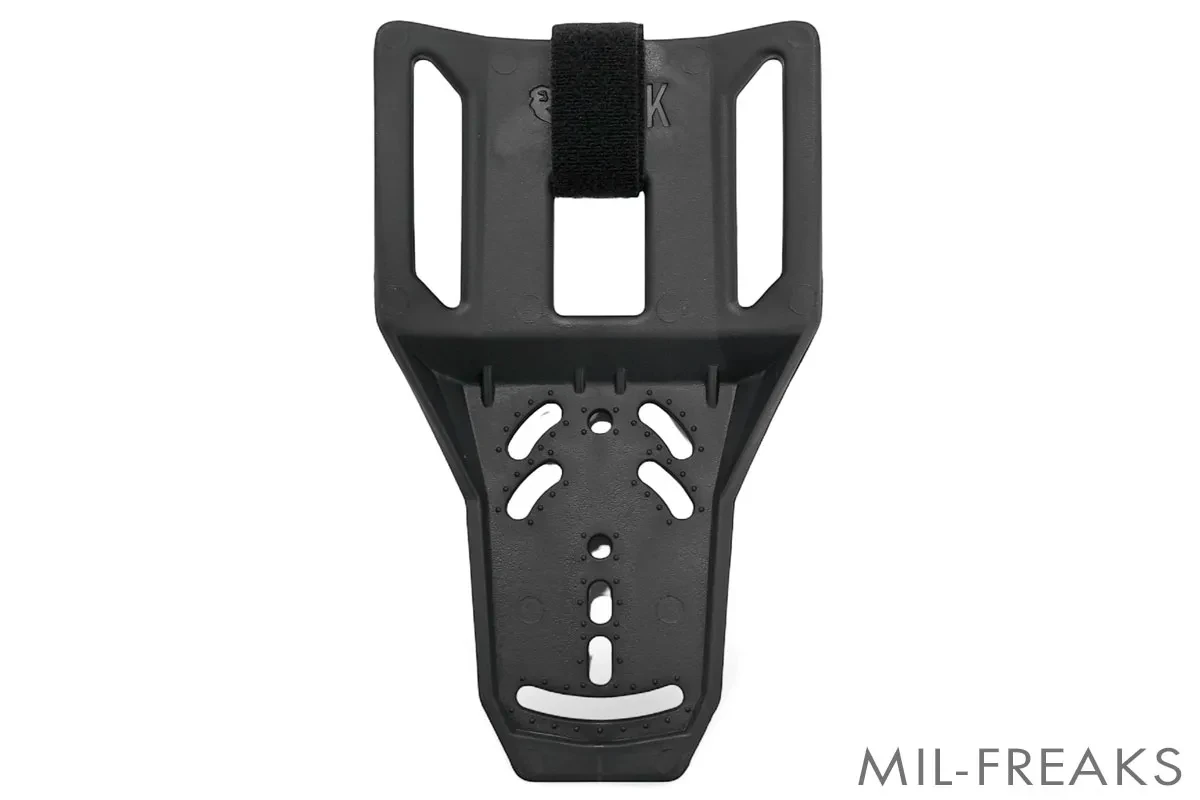 幅広いホルスターブランドに対応する汎用性の高いホールパターン設計が最大の特徴で、T.REX ARMSはもちろん、Safariland、Blackhawk、Alien Gear、Daraといった主要メーカーの多くのホルスターやアタッチメントとも互換性を維持しています。