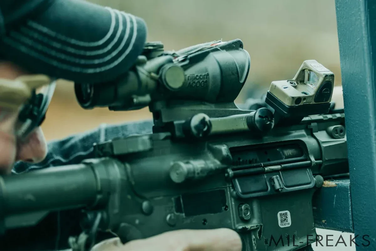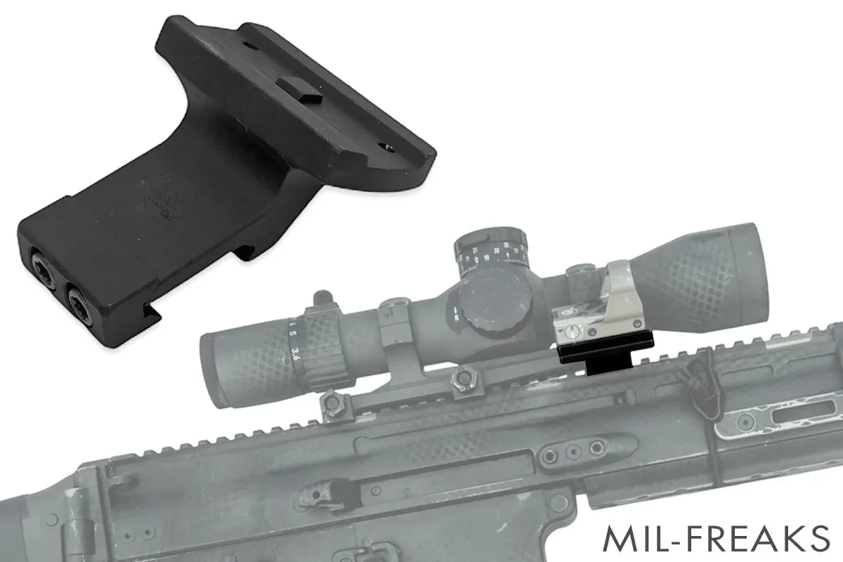 銃のメイン光学機器にセカンダリー光学機器を搭載するための、角度が付いたミニマルマウントです。