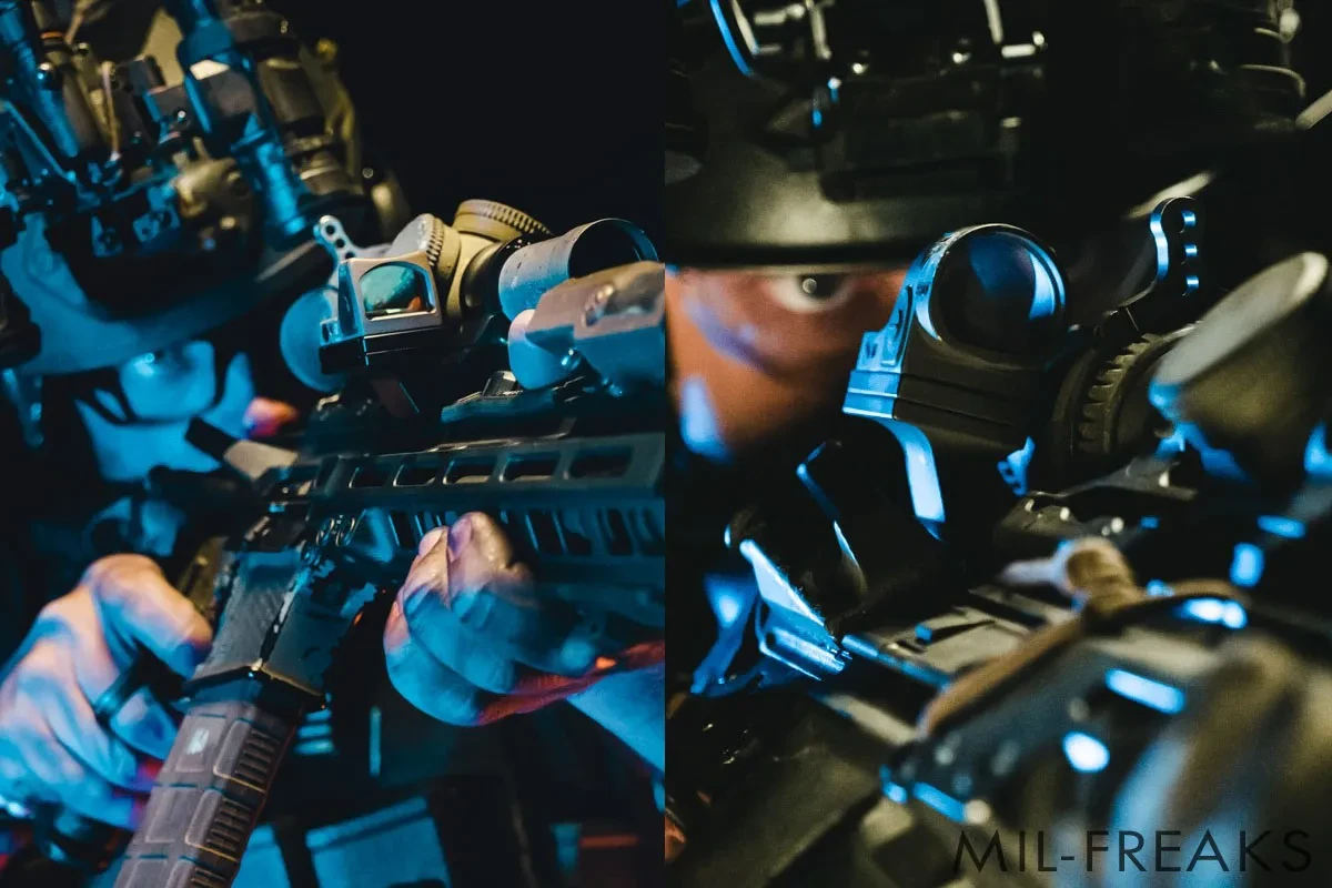どんな高倍率のスコープを使用していたとしても、銃を肩付けしたまま僅かに回転させるだけで、即座に等倍サイトを利用可能にします。