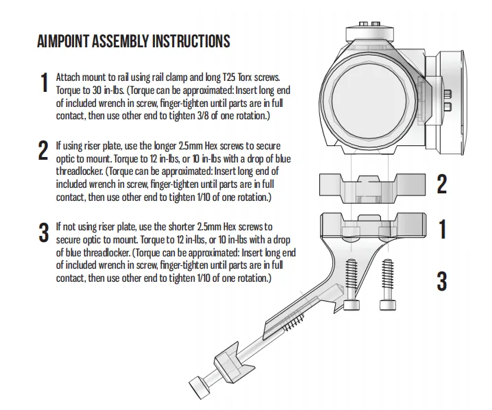 Aimpoint T-1/T-2、H-1/H-2、Comp M5のほか、SIG Romeo4/4XTやHolosun 403/503/530といった主要なマイクロサイトと互換性があります。