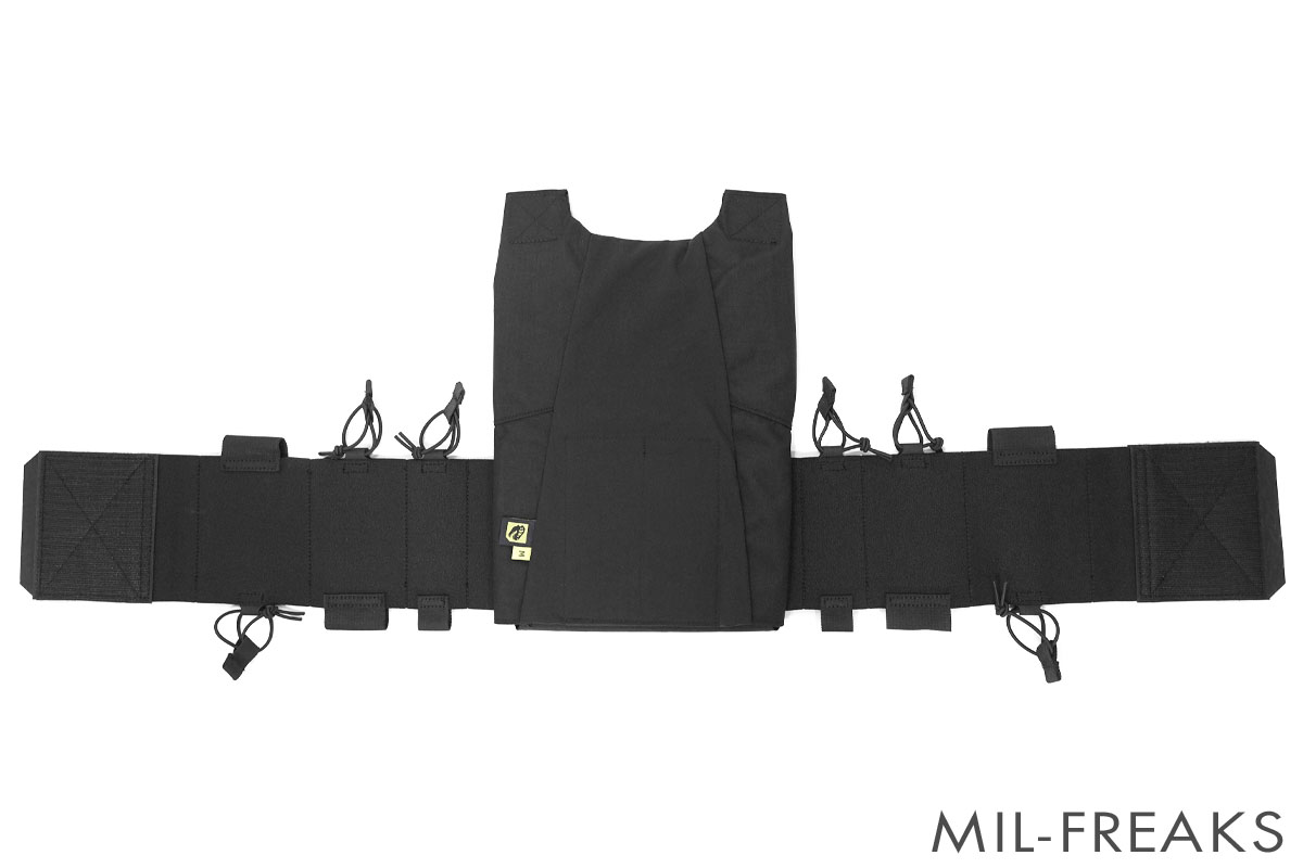 フロントパネルの胸部分左右に配置されたバックルは、Velocity Systems (MAYFLOWER) やHaley Strategic、Spiritus Systems が採用しているパネルシステムと同じサイズのバックルを使用しています。