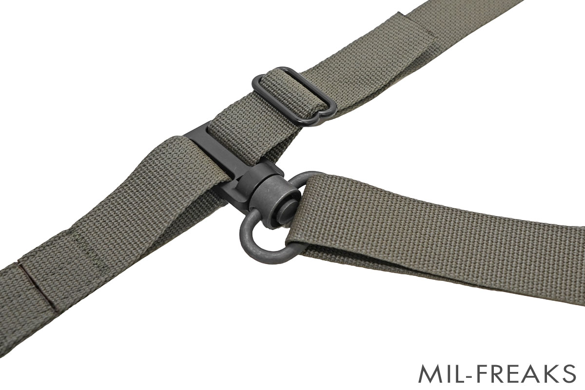 これにより素早い脱着を可能にするほか、ワンポイント/ツーポイントの切り替えをシームレスに行うことができます。