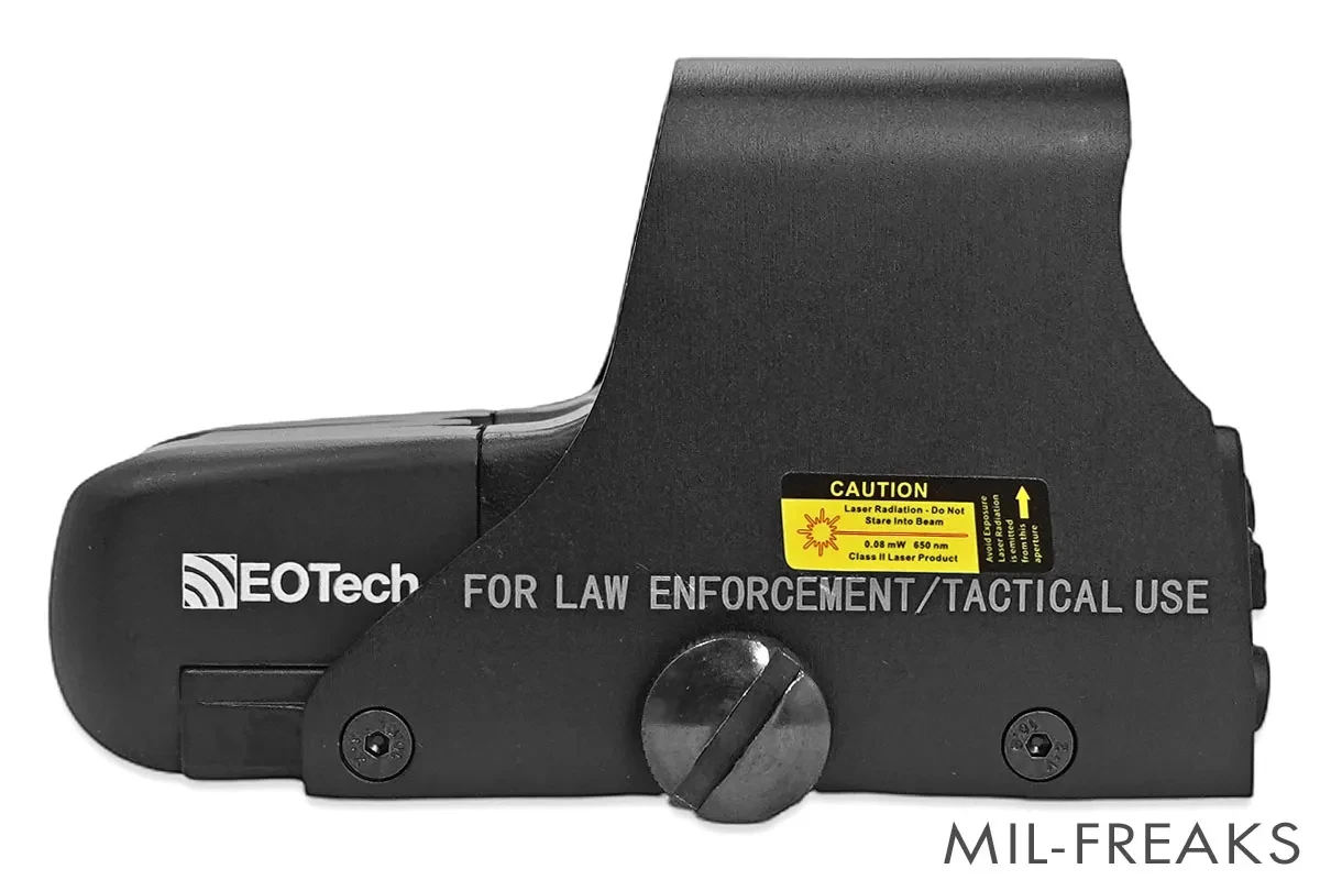 フードの調整ネジ部分が涙型になっており、バッテリーボックスのEOtechロゴがL3傘下になる前の虹型ロゴになっています。