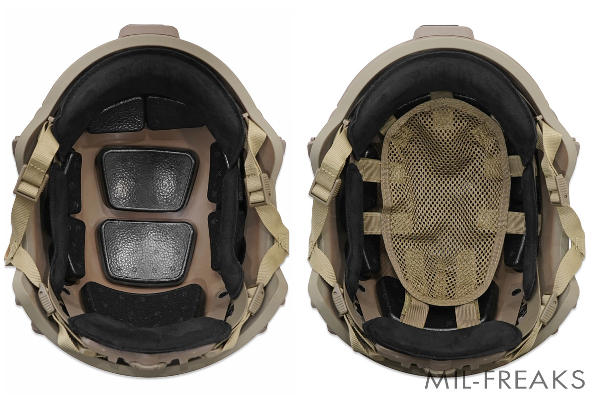シェル形状は実績のあるACHスタイルを採用しており、側頭部から後頭部にかけて広範囲をカバーすることで、軽量化よりも防護面積の最大化を優先しています。