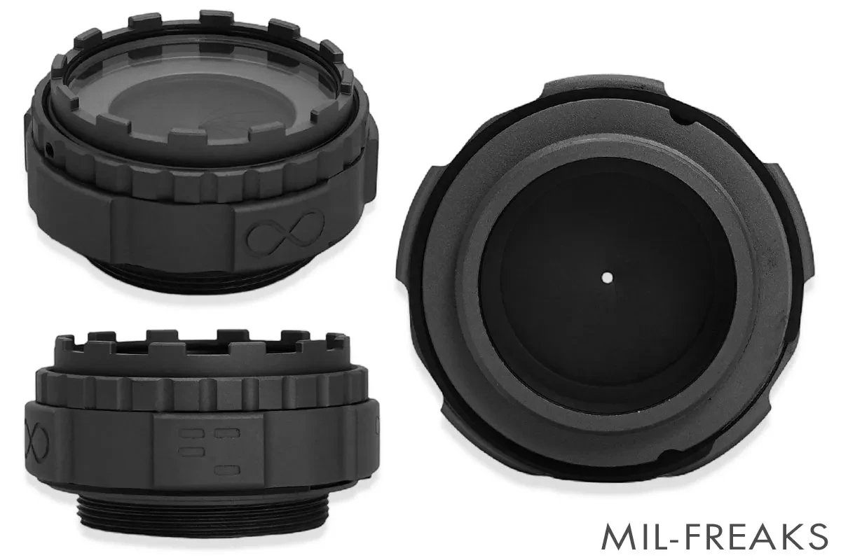 Infinity Capは、高価なNVGの対物レンズを物理的な衝撃から保護する「プロテクター」としての役割と、NVGを装着したまま眼の前のドアや機器に瞬時にピントを合わせるための「可変焦点アイリス(絞り)」としての役割を、一つのユニットで実現します。