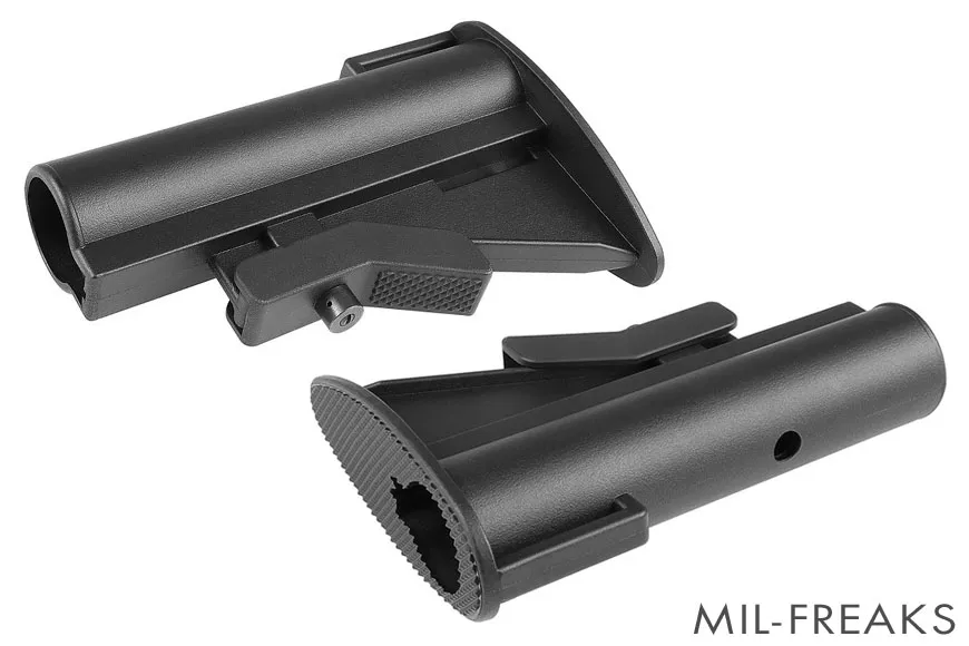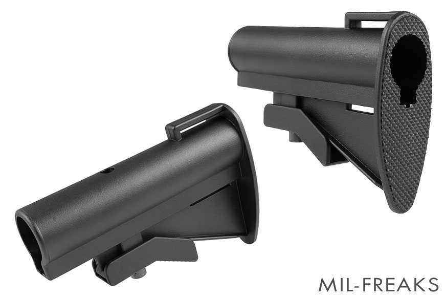 デルタフォースや特殊部隊での使用が有名な、シンプルなデザインの初期型ストックです。