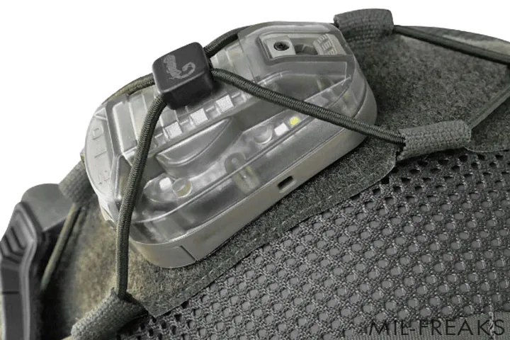 左右に配置されたケーブル管理チャンネルや、IRストロボやカメラを固定する上部のバンジーエリアにより、激しい動きの中でも装備品の脱落や引っ掛かりを完全に防ぎ、常に戦術的優位性を提供します。