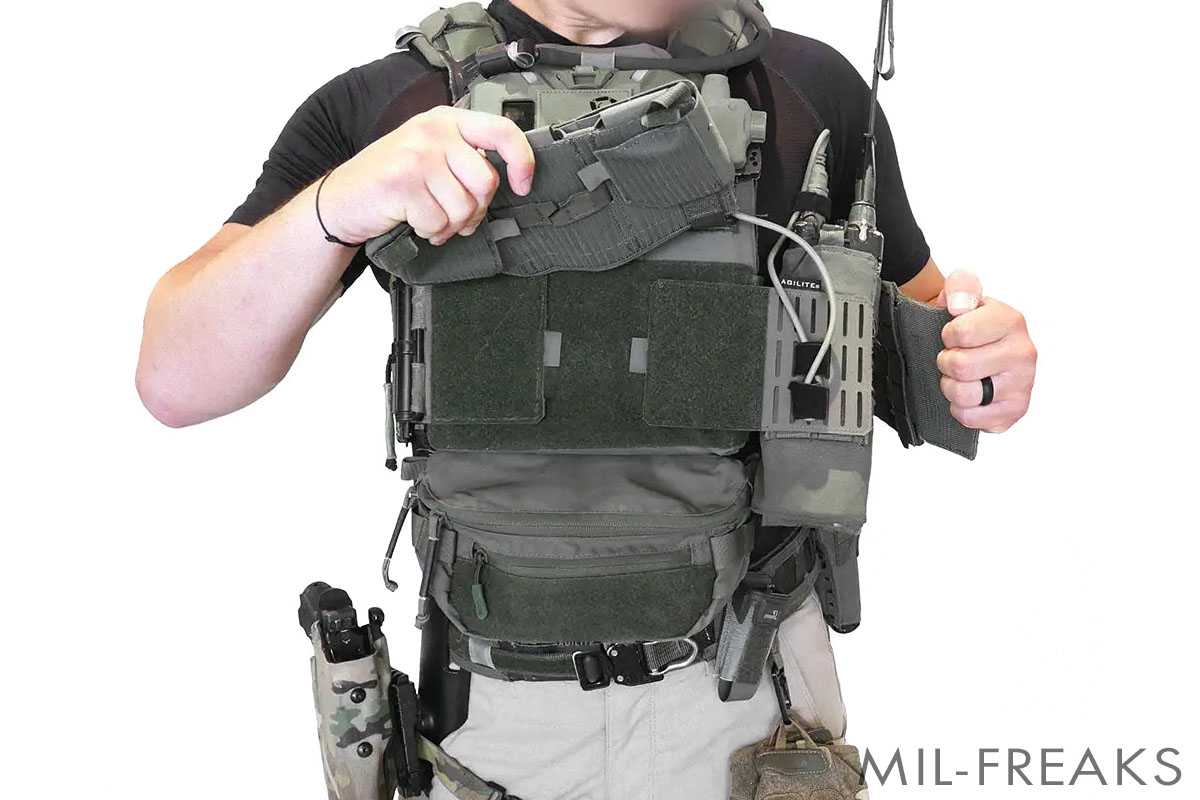 Agilite MOLLE Hangerは、プレートキャリアやタクティカルベルトの限られた装着スペースを有効に活用するための拡張パネルです。