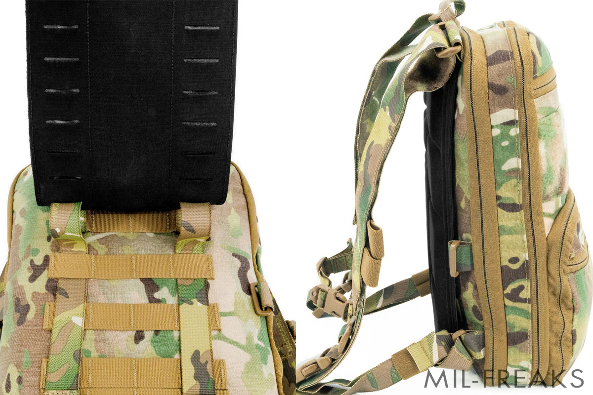 HSP FlatPack バックパッドはお手持ちのフラットパックの背面にアタッチするクッションパッドで、長時間の着用や激しい運動中でも快適性と通気性を提供します。