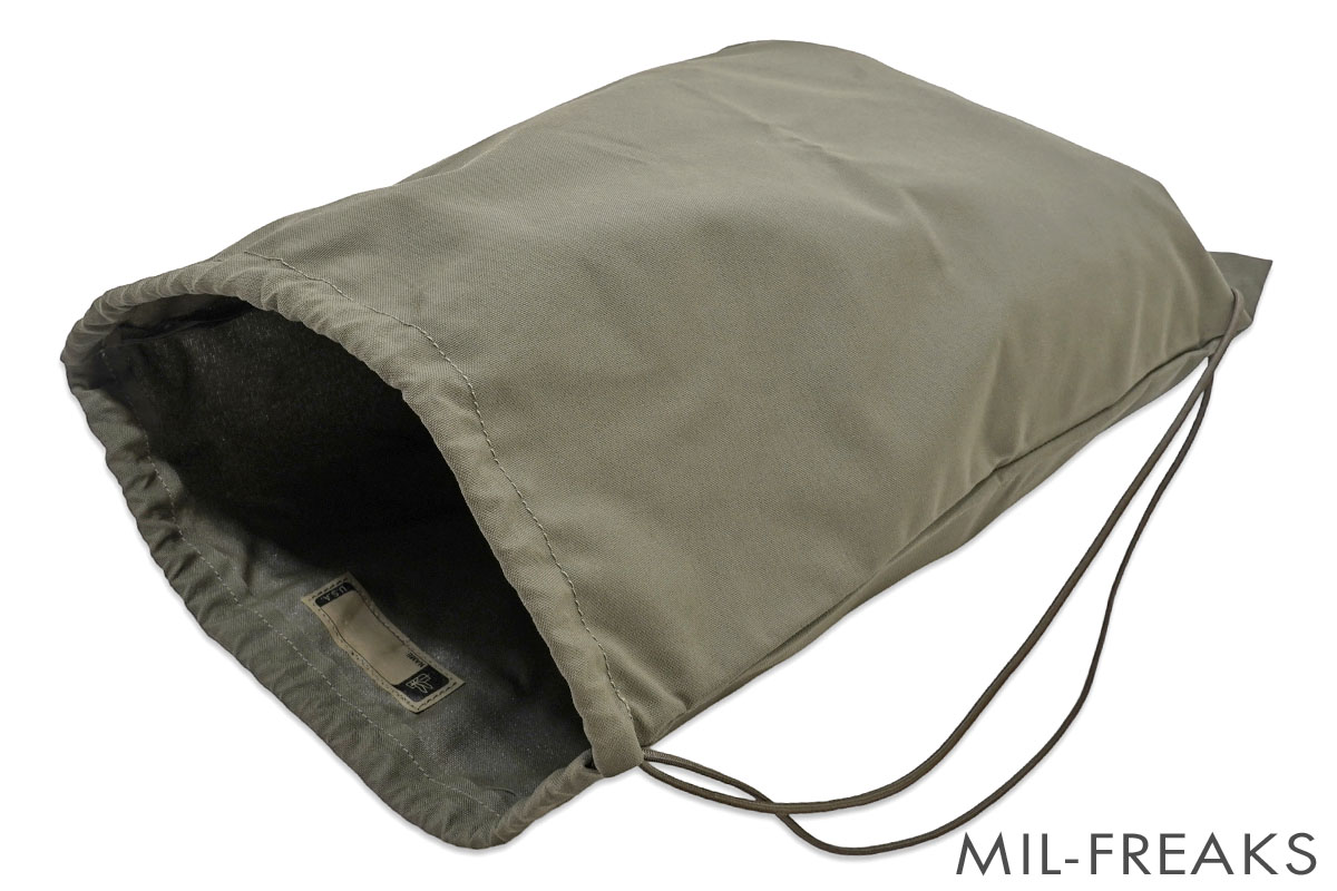 開口部のコードを引くことで瞬時に閉じられる設計で、2本のパラコードは開閉用のドローコードであると同時に、そのままショルダーストラップとして機能する仕組みとなっており、荷物を詰め込んで素早く背負うことができます。