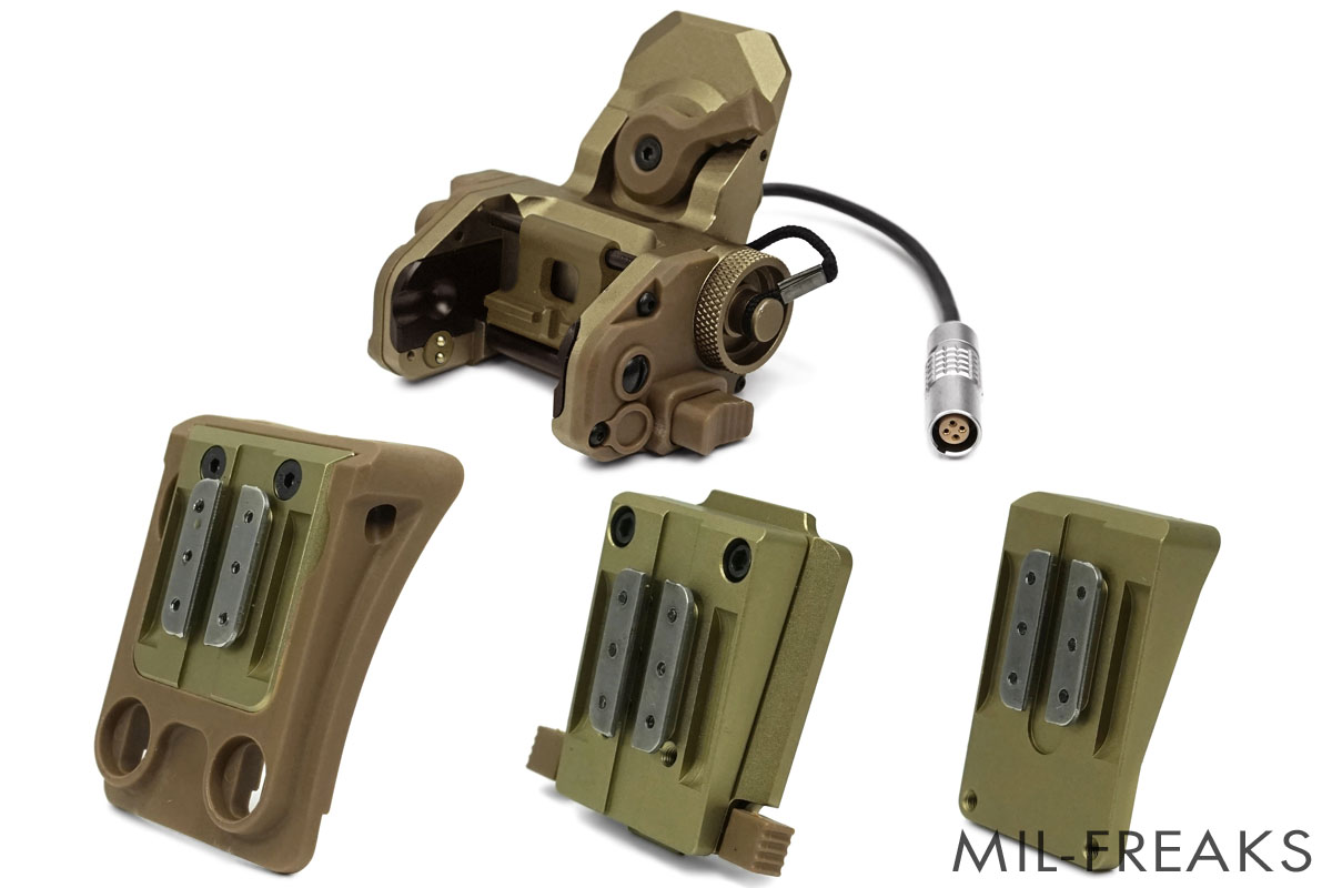 4ホールタイプ、Ops-Coreなど一般的なシュラウドに取付可能な汎用タイプ、Low-Profileな2ホールタイプの三種類のシュラウドが付属しており、AirFrameやMICH/ACH、FASTなど様々なヘルメットに対応。