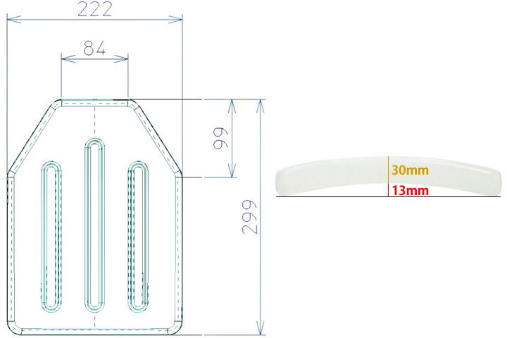 SAPI SMALLサイズに準拠したデザインで、体の形にフィットするよう湾曲して成形されています。