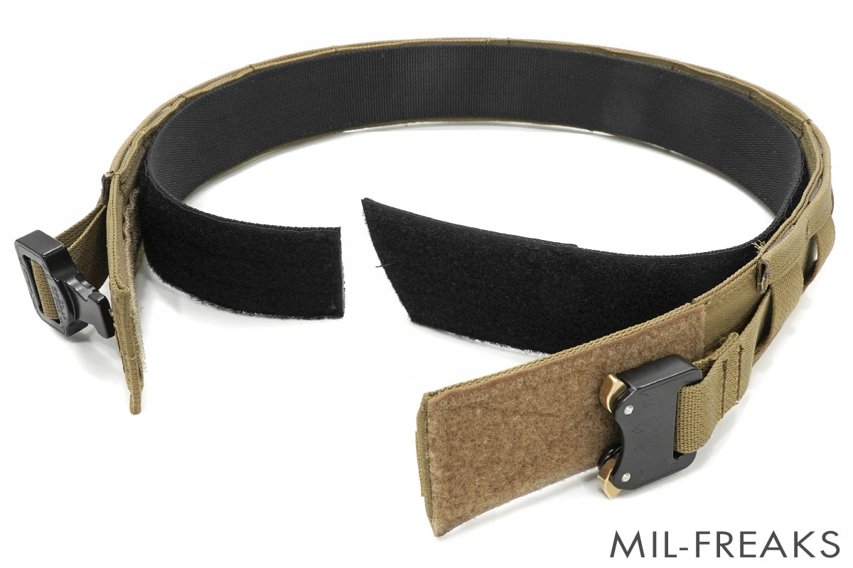 当商品には1.75インチのパンツベルトと2インチ ガンベルトの二種類のベルトが付属し、ベルクロ付きのパンツベルトをパンツに通し、その上からガンベルトをベルトループの上から装着して使用します。