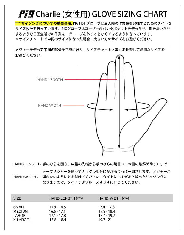 Charlie グローブは、PIGを代表するFull Dexterity Tactical (FDT) Alpha グローブの機能やデザインはそのままに、手が小さい方や女性向けに作られた小型サイズモデルです。
