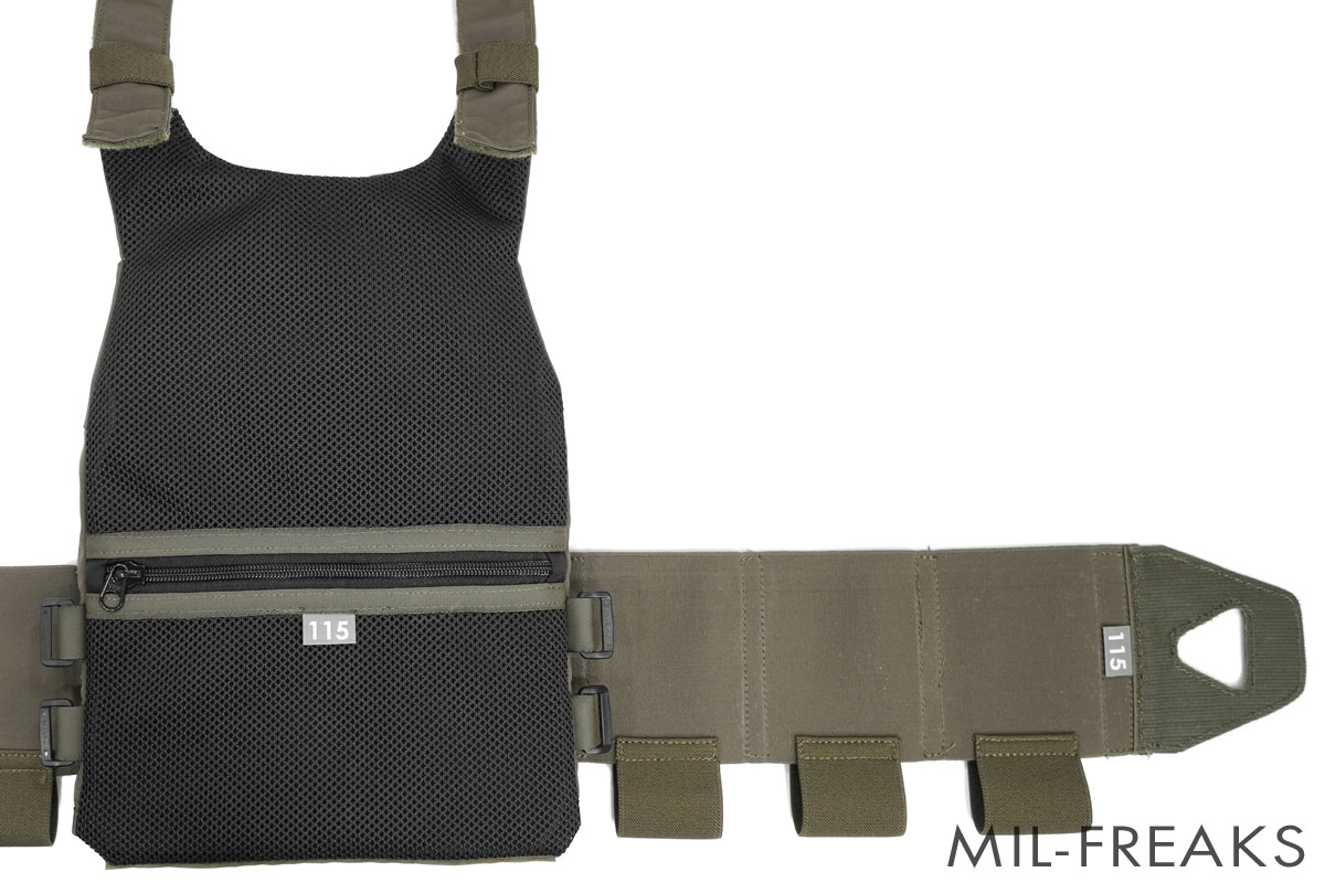 フロント/バックボディは下半分がベルクロ張りになっており、同社製の別売MOLLEパネルやチェストリグなど各種アタッチメントをボディの前後問わずセットできる圧倒的な拡張性を備えています。