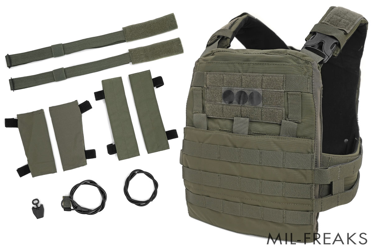 当商品は土台 (プレートキャリア) の他にサイドカマーバンド、伸縮生地の軽量ショルダーカバーが付属します。