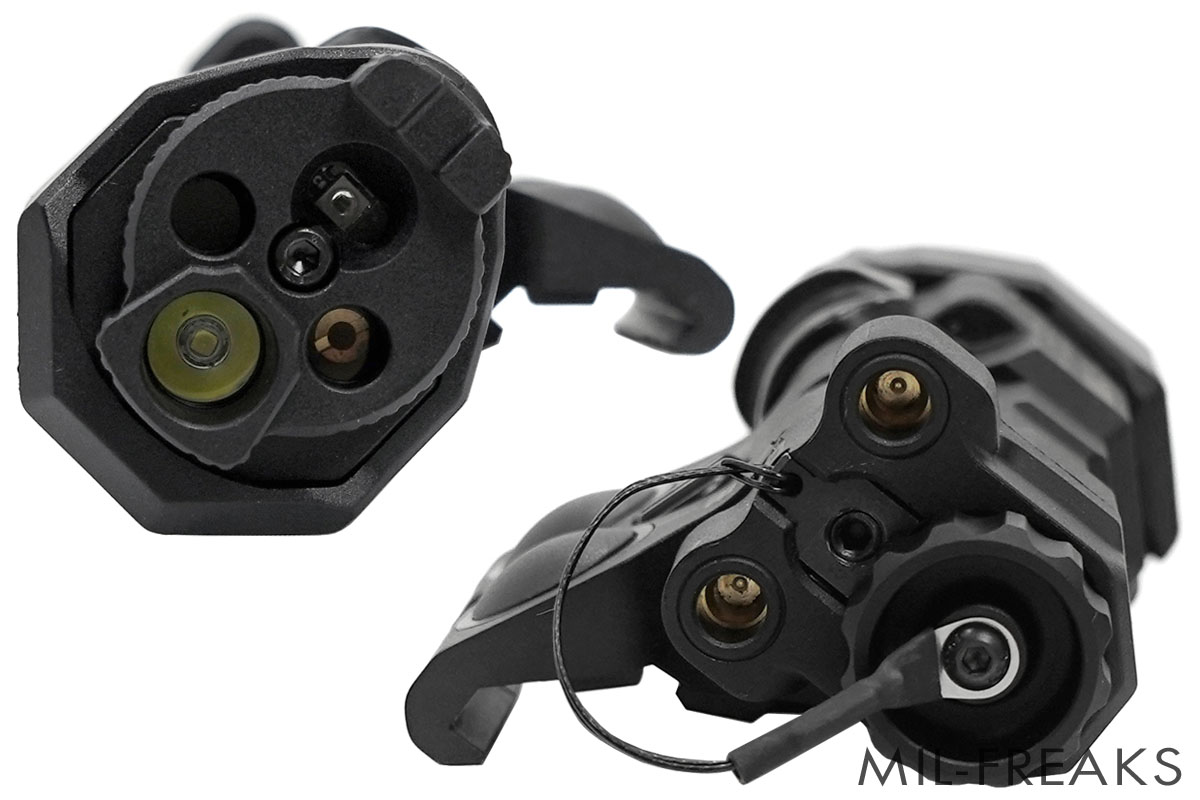 スイッチはライトヘッドのカバーをスライドすることでON/OFFを行え、2つのFIREボタンで可視光またはIRイルミネーターの照射を行うことができます。