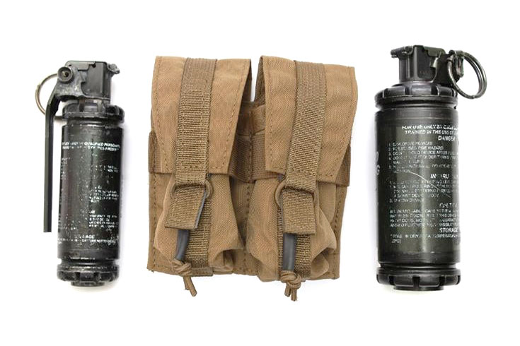 米軍御用達の装備品メーカー LBTのタクティカル・ライン、LBX製 Dual Banger - V バーティカル ダブル フラッシュバンポーチ コヨーテブラウン