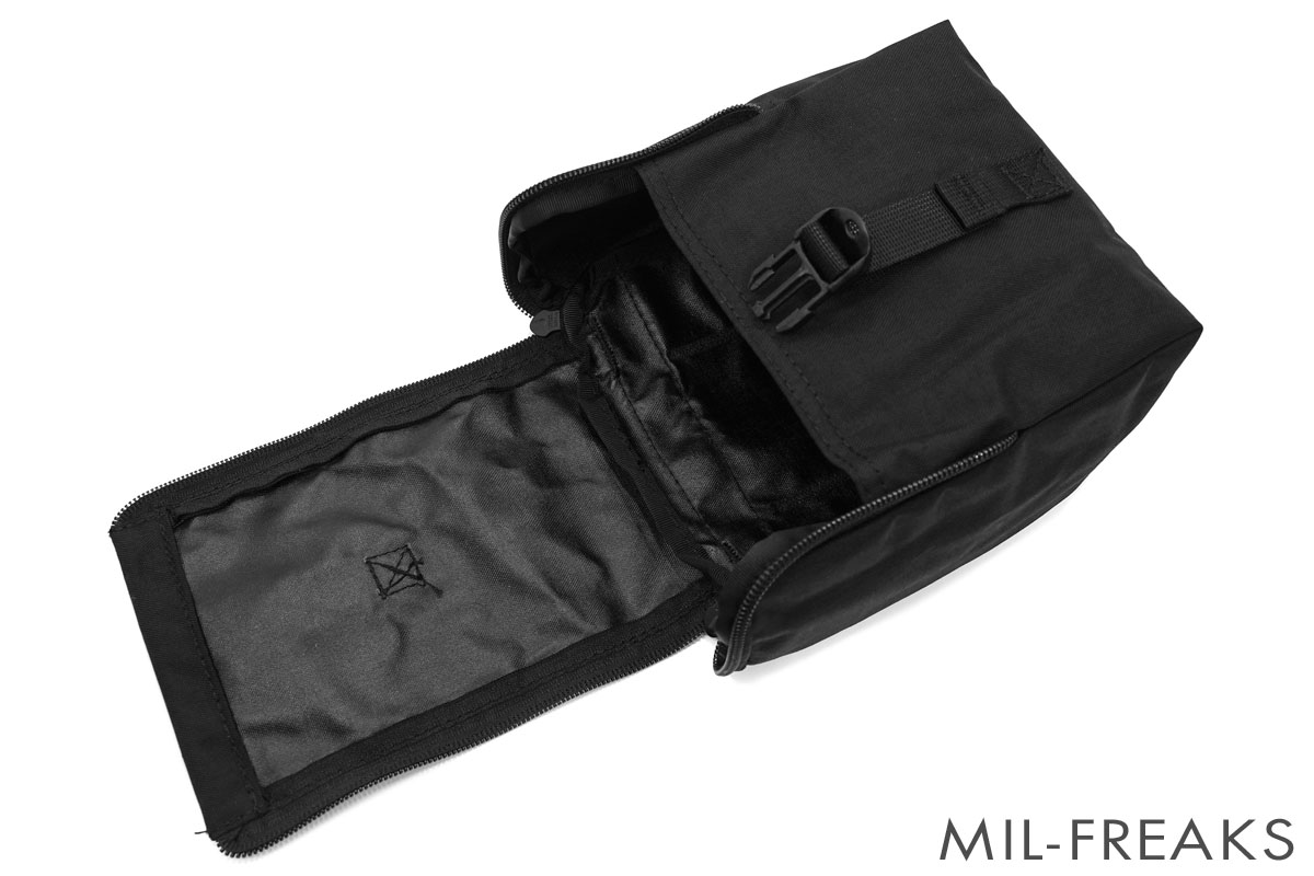 ポーチの両サイドのジッパーと中央のファステックスバックルによって開閉し、大きな物でも出し入れしやすい、Cryeならではのユニークな構造になっています。