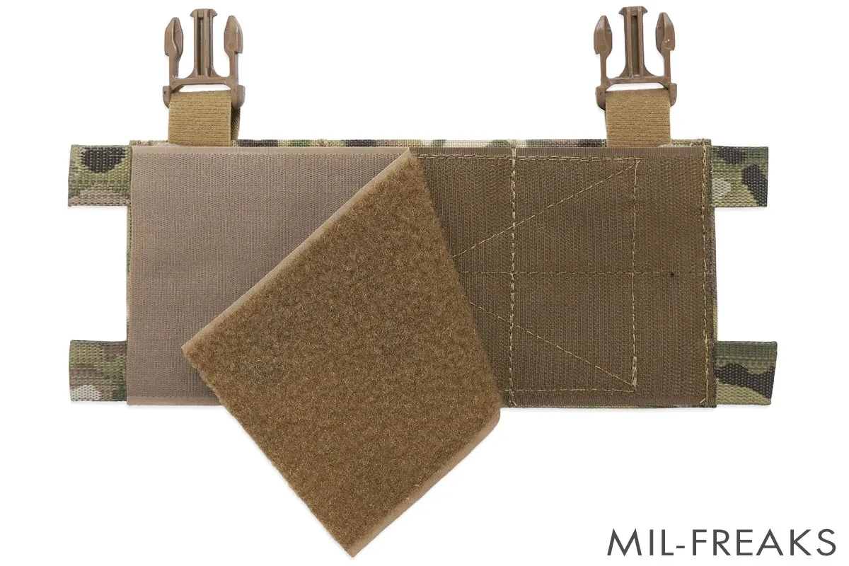 左右上部のバックル自体もベルクロで取り付けられているため、Velocity / MAYFLOWER / HSPといった共通の「プラカードプラットフォーム」を有するプレートキャリアやチェストリグでなくとも、自在に幅や高さを調整して取り付けることができます。