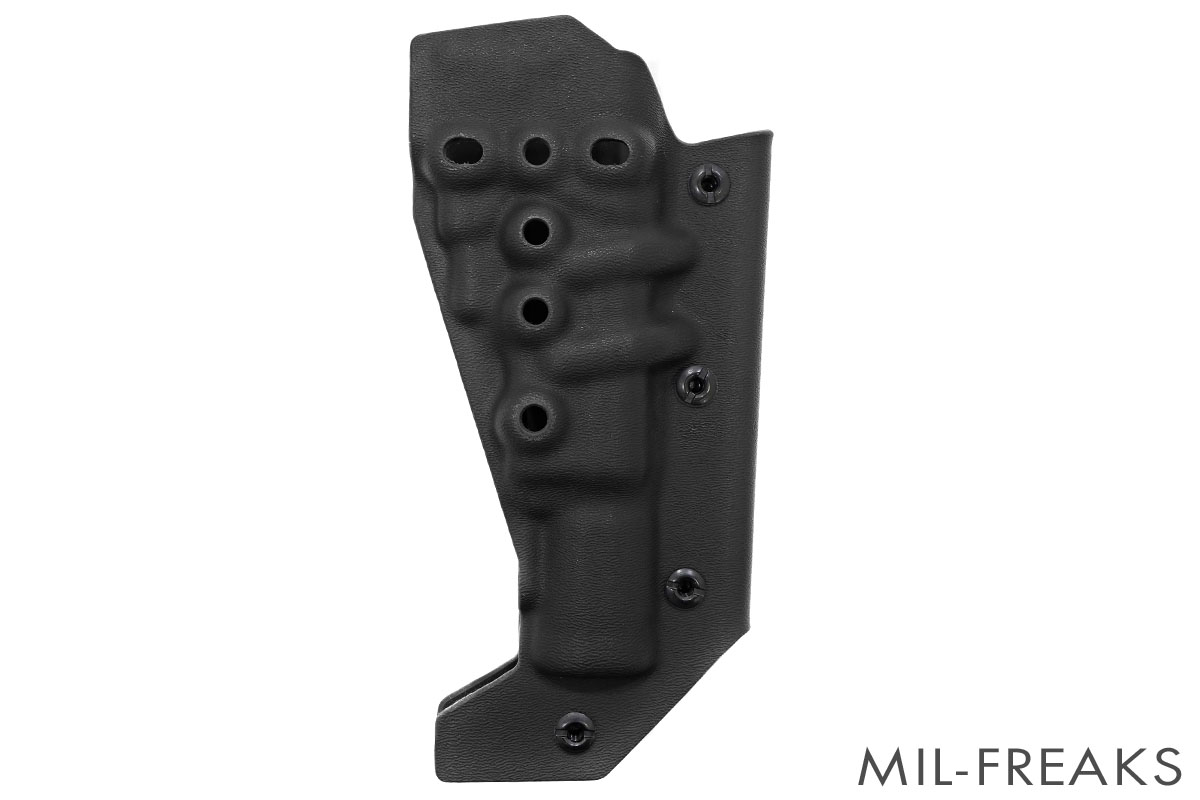 ラグナロクは背面のプラットフォーム用ネジ穴が特徴的で、Safariland, G-Code, Blackhawk, Blade-Tech, S&S Precisionなどの様々なマウントオプションに対応しており、新たにプラットフォームを買い足す必要がなく、抜群の汎用性を誇ります。