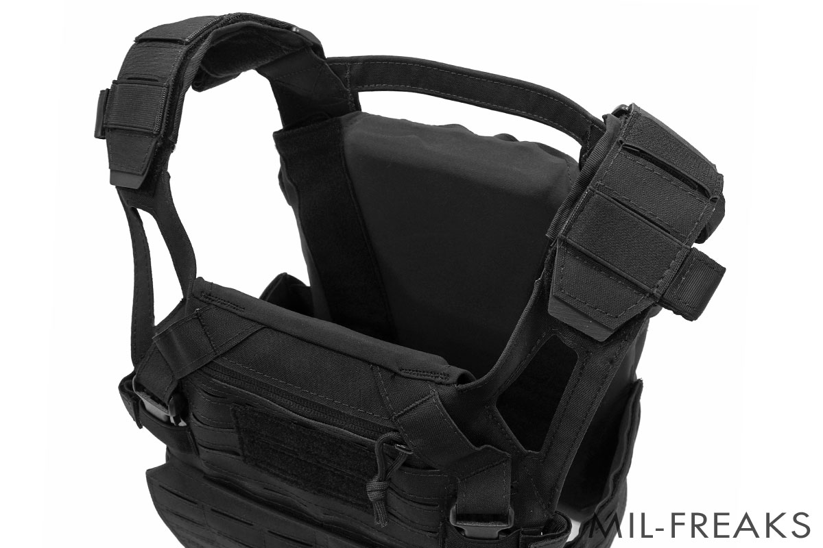 フロントパネルの胸部分左右に配置されたバックルは、Velocity Systems (MAYFLOWER) やHaley Strategic、Spiritus Systems が採用しているパネルシステムと同じサイズのバックルを使用しています。