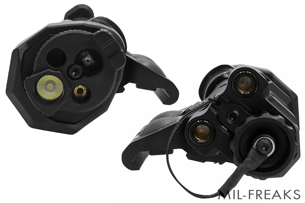 スイッチはライトヘッドのカバーをスライドすることでON/OFFを行え、2つのFIREボタンで可視光またはIRイルミネーターの照射を行うことができます。
