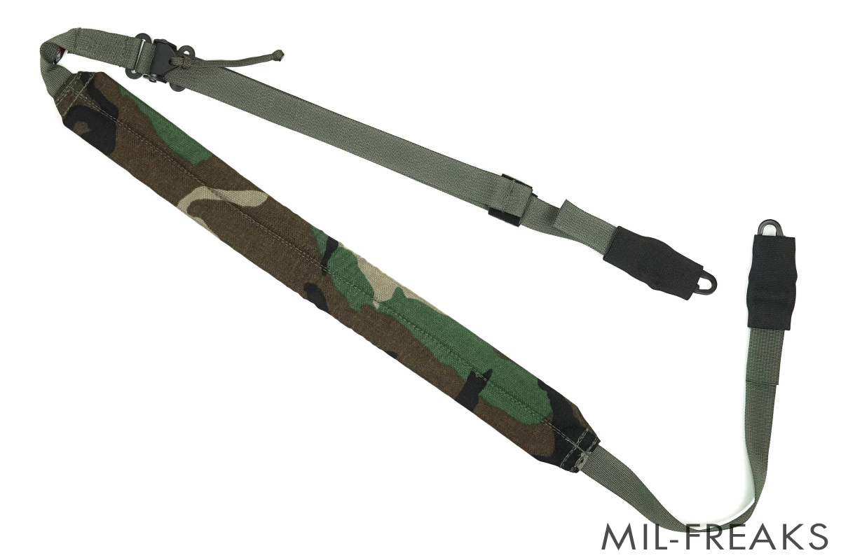 ワンタッチで素早くスリング長の伸縮を行える、パッド付きの2ポイントスリングです。