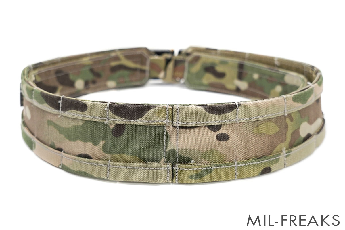 装着される様々な装備品による重さによってヨレないようにするためには、ベルトを硬くすることが合理的な解決法ですが、激しい運動によって腰に食い込み、付け心地はトレードオフされてしまいます。