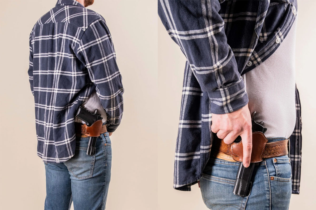 フルグレインのプレミアムレザーで作られたFoldaway ホルスターは、ベルトに装着することでベルトそのものをホルスターの内部として使用する、ユニークなキャリースタイルを提供します。
