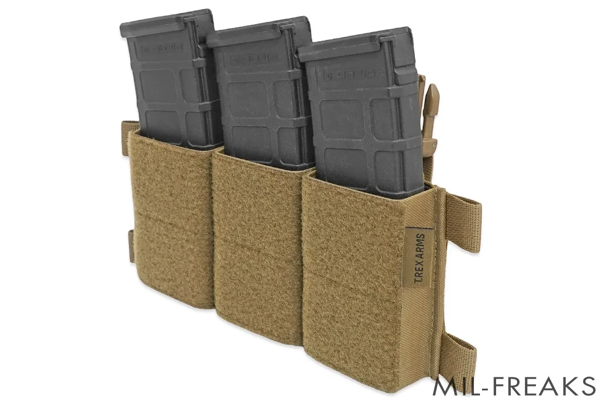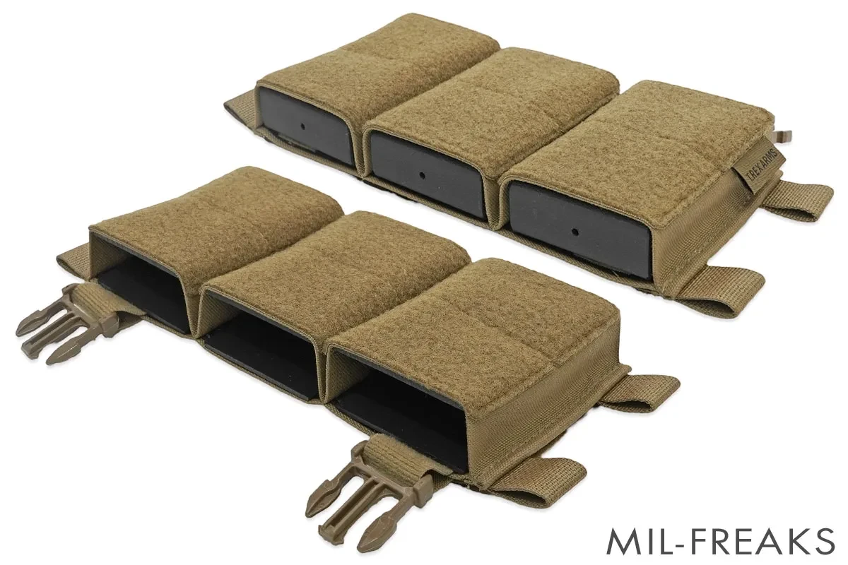 Esstac社とのパートナーシップで作られた556 KYWIプラカードは5.56 M4マガジンまたは5.45x39 AKマガジンを3本収納でき、バックルやベルクロでプレートキャリアに固定できるように設計されています。