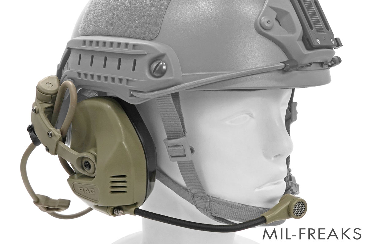 RACはOps-Coreが提供する次世代のヘッドセットで、Ops-Core FASTヘルメットなどに使用されるARCレイルに直接取り付けて使用します。※ヘルメットを介さずに単体で使用することはできません。