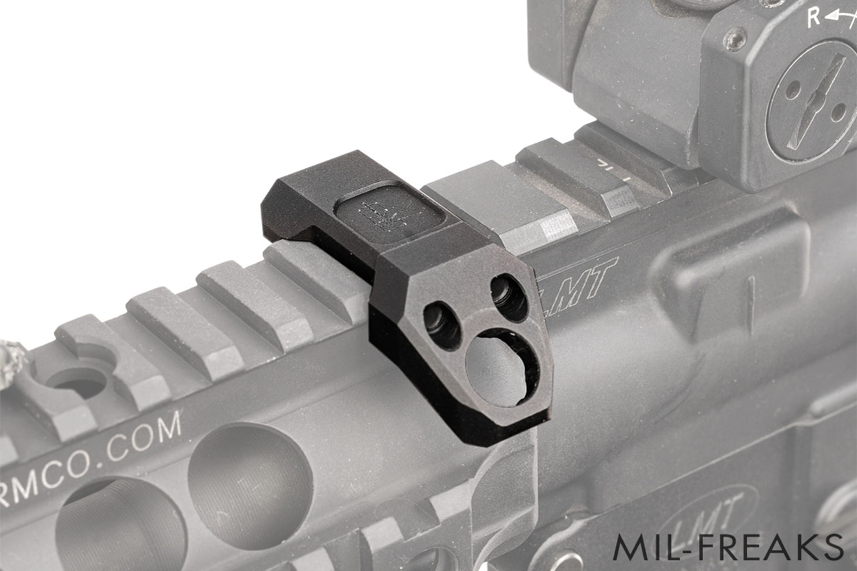 エンドプレートにQDスリングスイベルを配置することで、スリングの広い可動域を確保し、左右どちらの手でも銃を操作することができるため、スイッチングが求められるような場面や、狭い場所での機動性とハンドリングを向上させることができます。