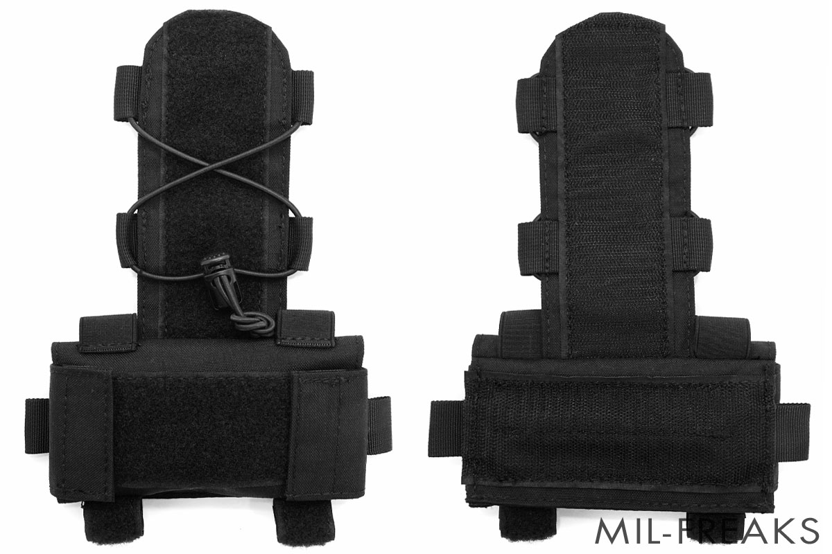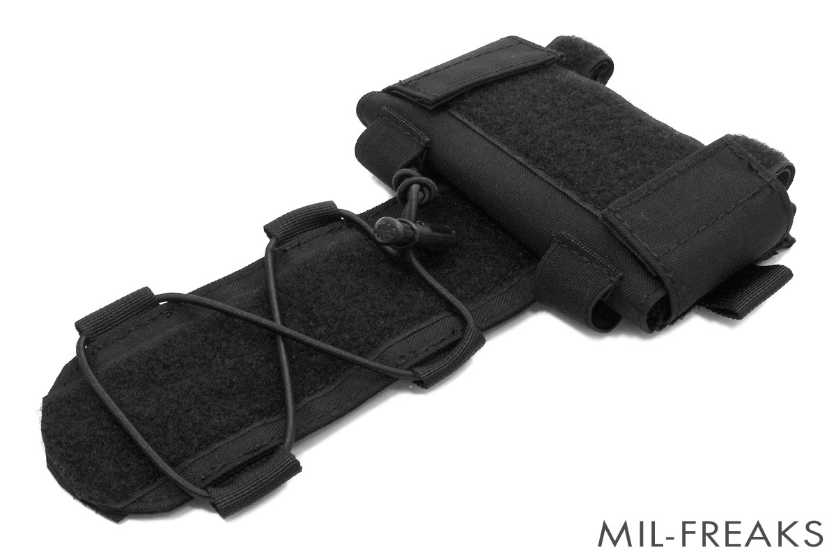 伸縮生地を使用したループがポーチ上部の左右に配置されており、即時使用するためのCR-123Aホルダーやケーブルガイドとして活用することができます。