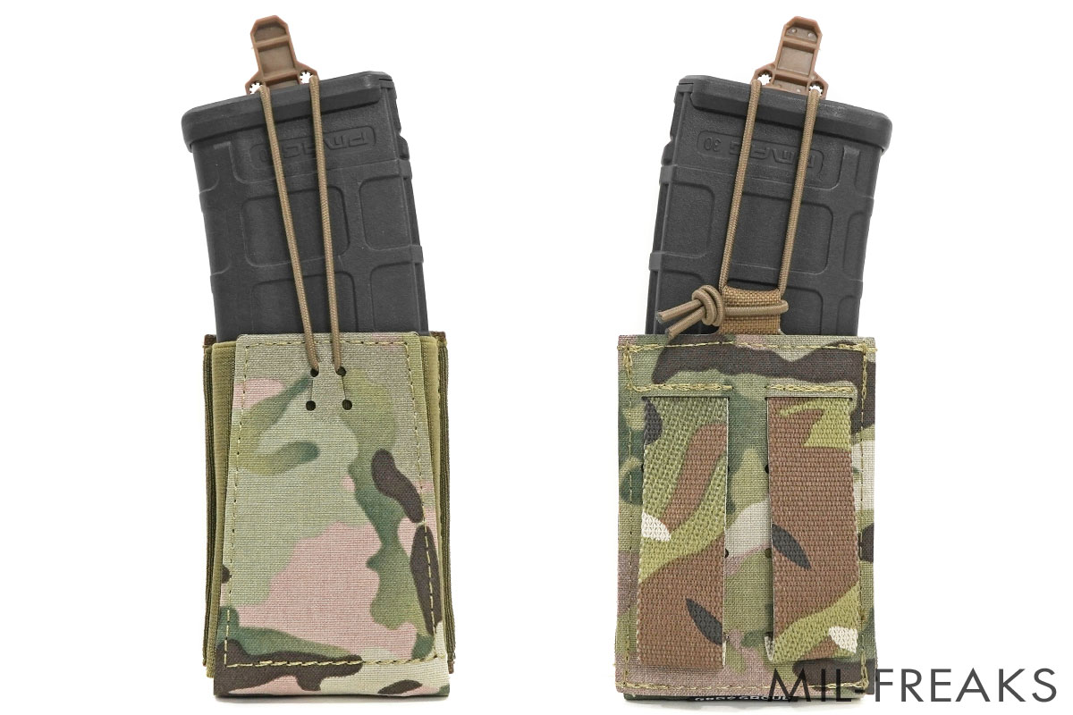 側面に伸縮生地を使用したポーチで、生地のテンションでマガジンを保持します。