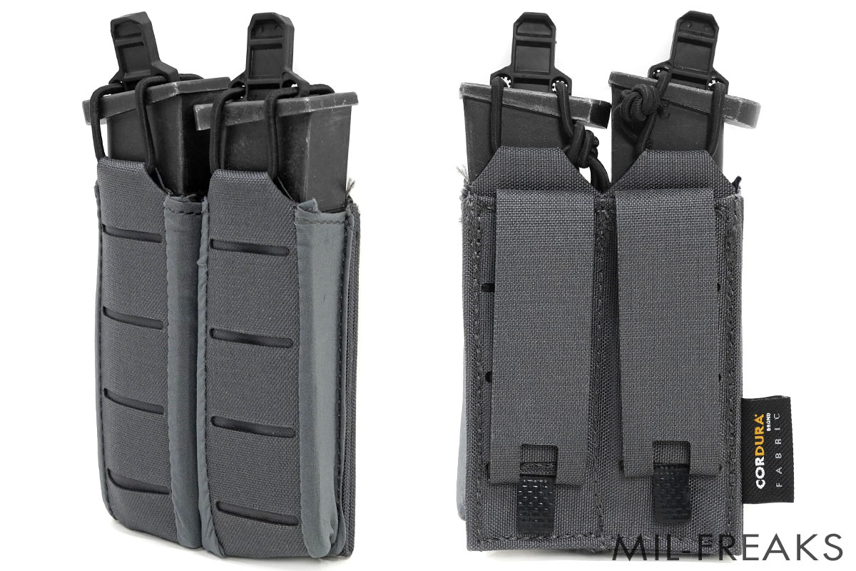 レーザーカットの軽量素材を使用したオープントップタイプのダブルマガジンポーチです。