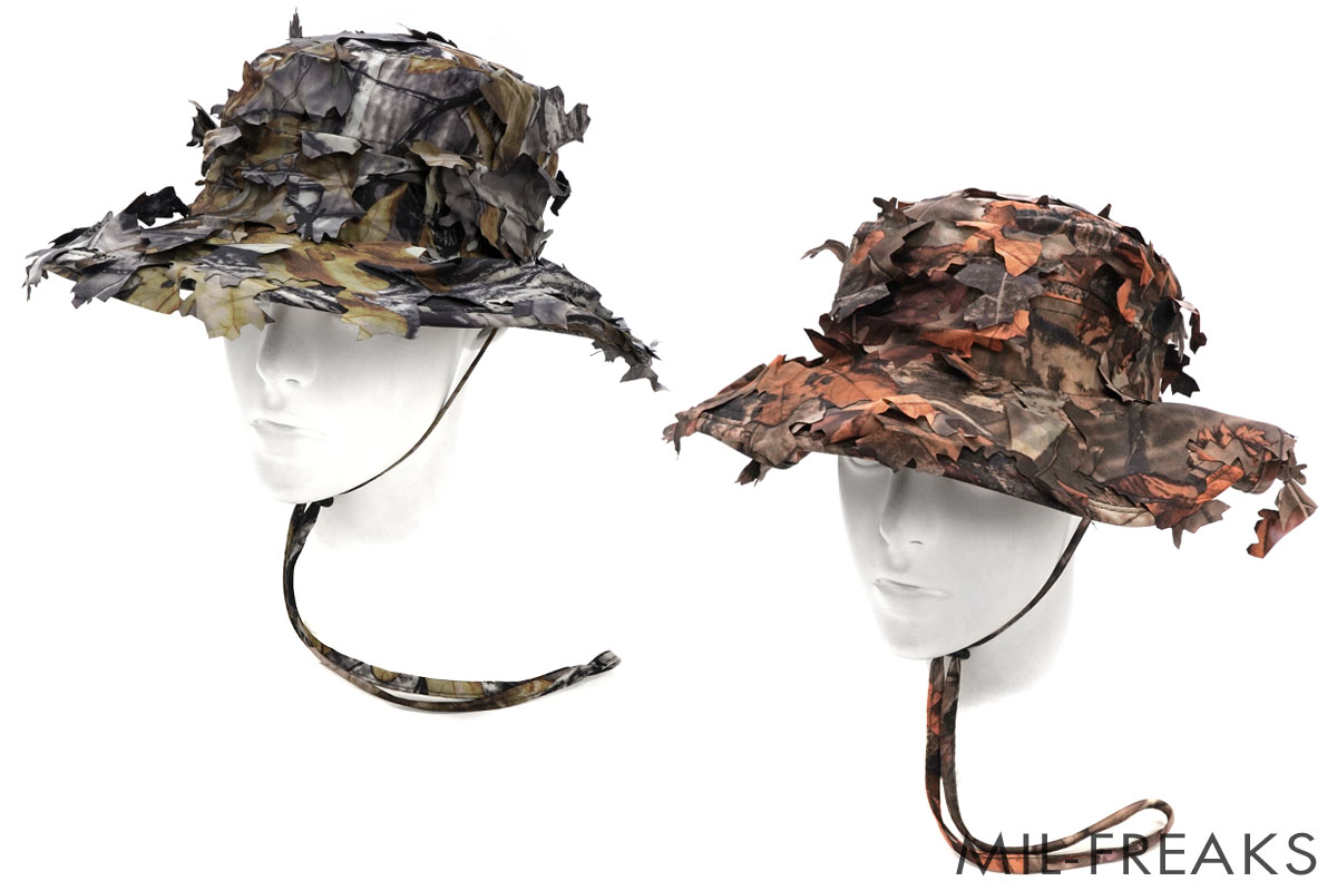 このブーニーハットは色彩による迷彩効果だけでなく、葉の形状でカットされているためギリーの偽装効果を望めます。