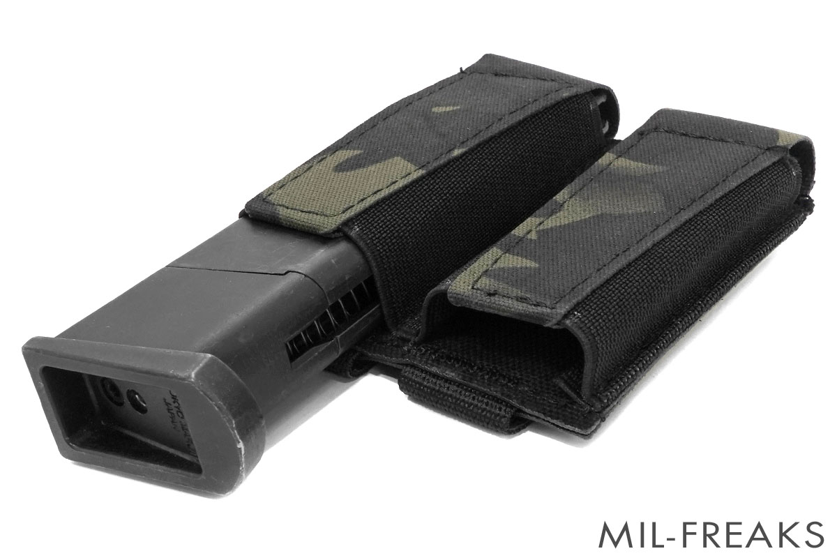 側面に伸縮生地を使用したポーチで、生地のテンションでマガジンを保持します。