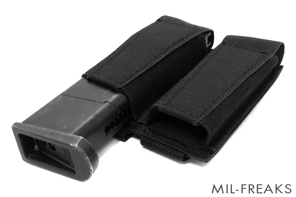 側面に伸縮生地を使用したポーチで、生地のテンションでマガジンを保持します。