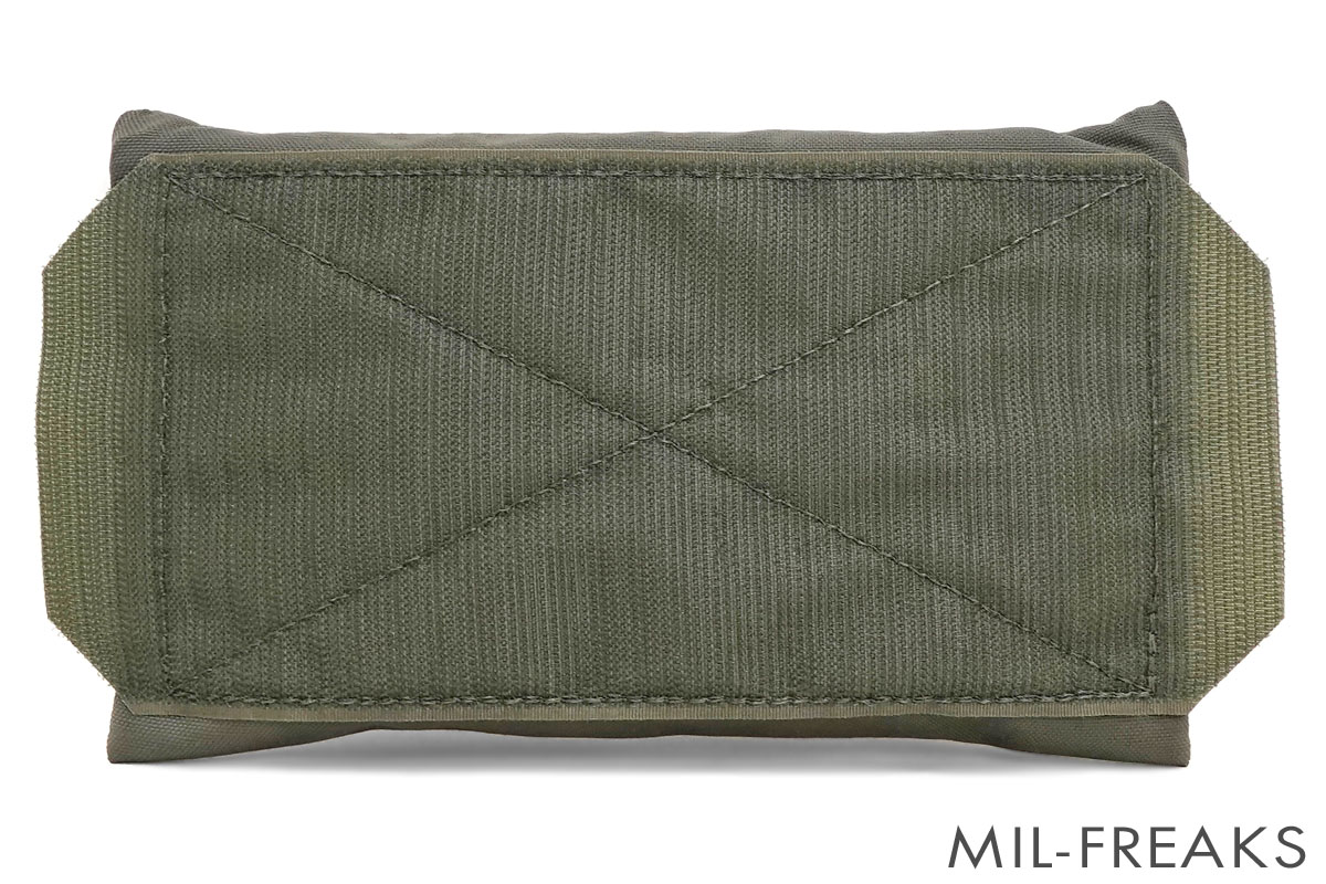 ポーチ背面のベルクロシートはポーチの大きさからややはみ出して羽のように展開しています。