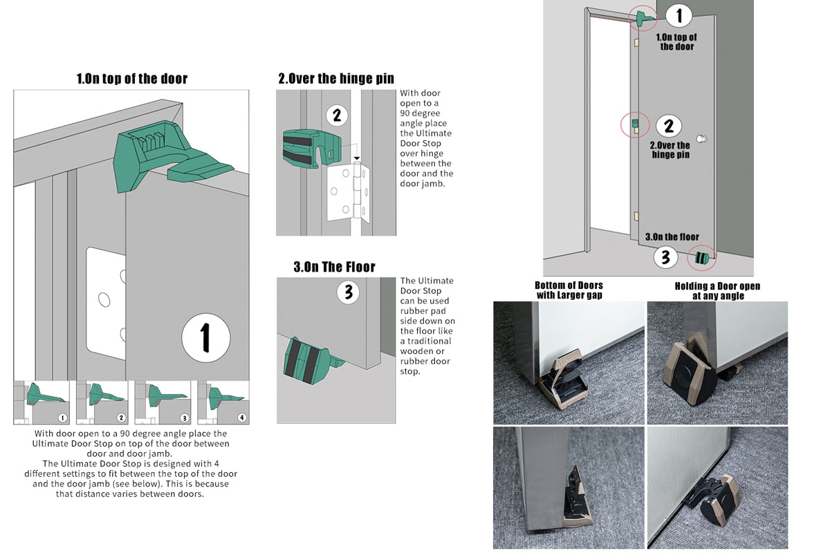 ドアの上部、ヒンジ部分、床面どこにでも取り付けることができ、ドアの状態や形状を問わず使用可能です。