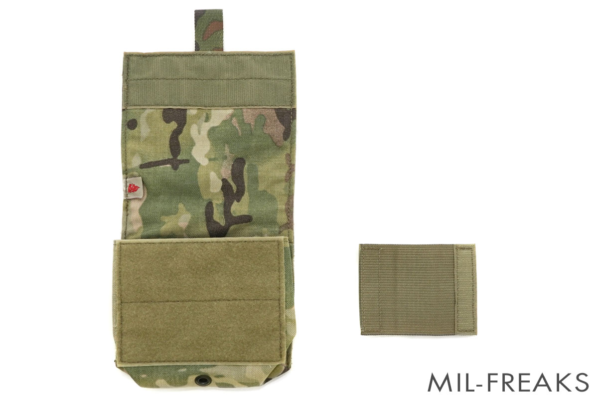 ポーチ前面は大型のベルクロシートで覆われており、大きめのクイックプルタブを備え、素早い開閉が可能です。